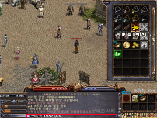 아데나를 판매할시 버프물약을 가지고 있어야 합니다.