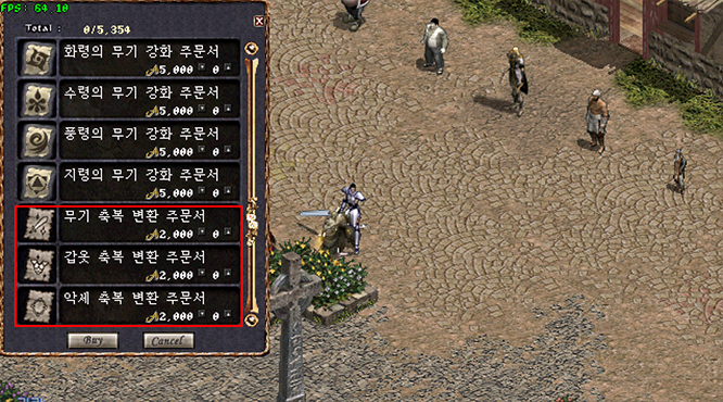 축복부여주문서를 클릭 후 원하시는 장비 [ 무기, 방어구, 장신구 ] 에 클릭