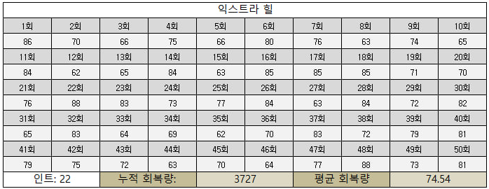 ※ 해당 실험은 익스트라 힐 마법에 대한 회복량 실험입니다.