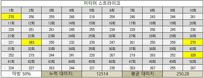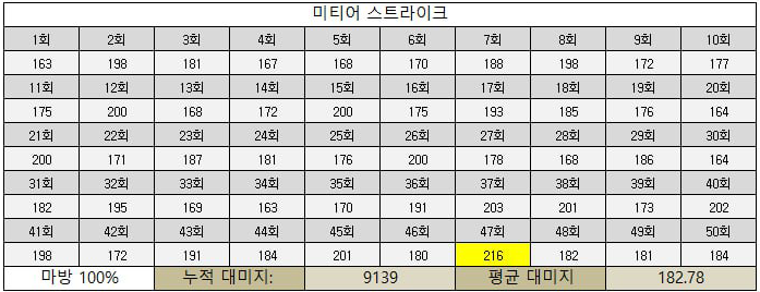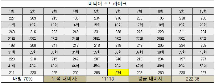 ※ 해당 실험은 미티어 스트라이크의 마법 대미지와 단계별 마법방어(MR)에 대한 대미지 실험입니다.