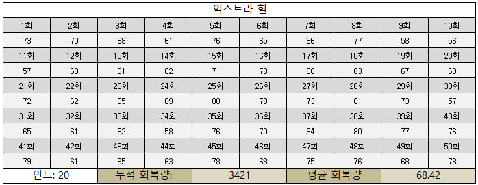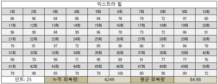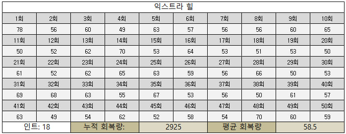 ※ 해당 실험은 익스트라 힐 마법에 대한 회복량 실험입니다.